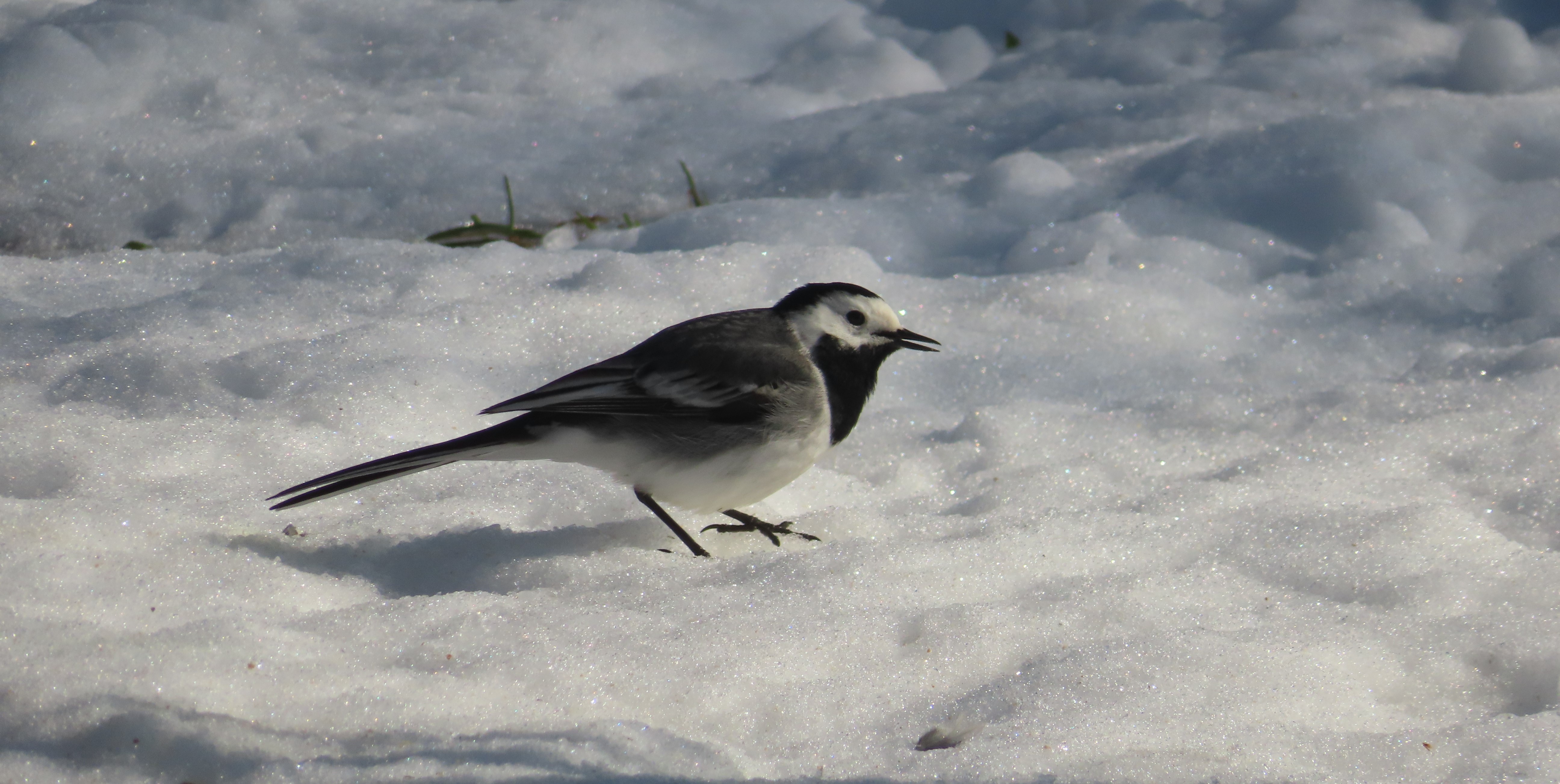 Takatalvi yllätti. Yöllä oli satanut runsaasti lunta. Kova tuuli haittasi. Päivällä oli jo muodostunut loskaa ja lätäköitä. Sulapaikkoja on jo useampia eri puolilla Töölönlahtea. Osa sulakohdista saattaa jäätyä uudelleen. Lahdelle oli saapunut kolme paria haapanoita. Naurulokkeja oli vähintään sata. Nokikanatkin ovat alkaneet levittäytyä eri puolille. ____________________________________________________